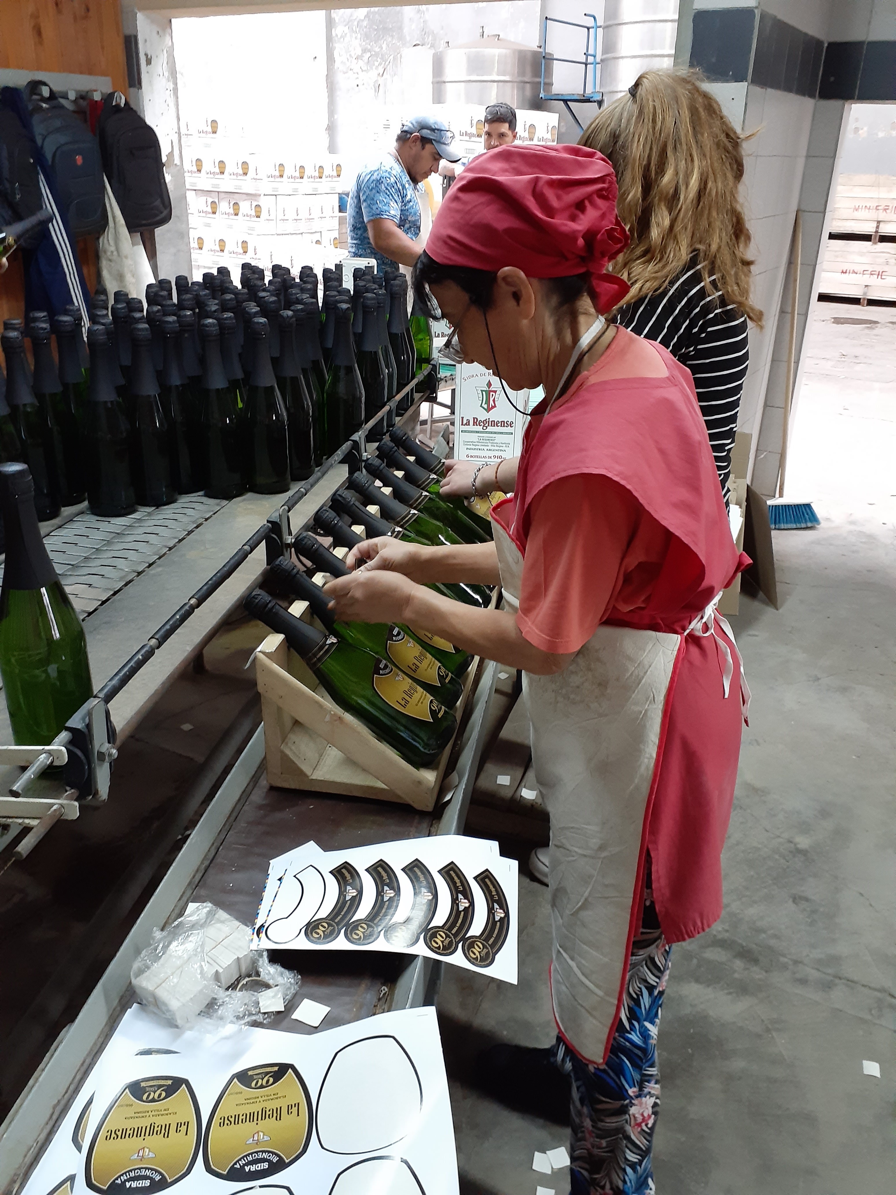 Para realizar todo el proceso, desde el trasvasamiento de las piletas al sistema de embotellado (pasando por la colocación de etiquetas y estibado), se cuenta con un total de 10 personas, tres de las cuales son de planta permanente y siete temporarios que fueron llamados para poder hacer la totalidad de los trabajos.