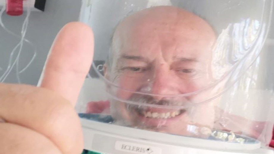 “Cuando el declive amenazaba con llevarme a terapia apareció el casco Helmet, que funciona como una escafandra de buzo dentro de la cual la máquina inyecta una mezcla de gases, aire y oxígeno puro, con el que tuve sesiones de cuatro horas dos veces por día. Ya llevo siete días con esta escafandra y parece que empiezo a doblar la cuesta hacia la mejoría, no lo sé, pero creo que voy bien.