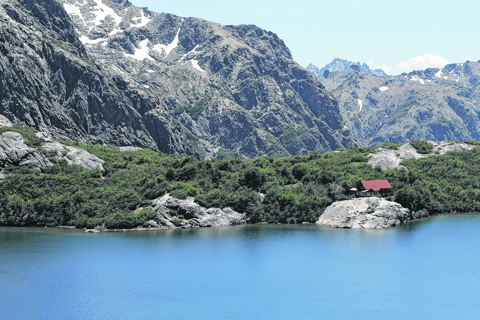 Desde el refugio el camino continúa por la margen izquierda de la laguna y luego asciende por una pendiente rocosa bastante cómoda hasta la Heriberto Schmoll, otra laguna de altura de singular belleza.