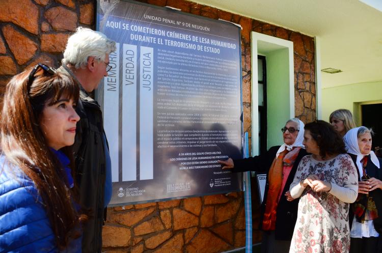 NEUQUÉN (AN).- “Aquí se cometieron crímenes de lesa humanidad durante el terrorismo de Estado”. El cartel quedó colgado en el ingreso a la U9 de la ciudad y se completó así la señalización del “circuito represivo” de la última dictadura cívico-militar en Neuquén y Río Negro.