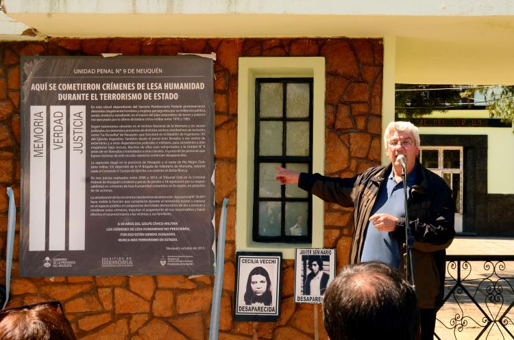 La U9 fue el último espacio que se señalizó en la región como lugar donde estuvieron alojados hombres y mujeres detenidos ilegalmente y perseguidos por su ideología política entre 1976 y 1983. Se colocaron carteles en “La Escuelita”, en la delegación de la policía federal de Neuquén, en la comisaría de Cipolletti y en la de Cutral Co. Lugones denominó a estas dependencias como parte de un circuito represivo. Aclaró que en la U9 no se torturaba, no se interrogaba ni era un lugar clandestino, pero sí pasaron por allí cientos de detenidos ilegales. “Acá blanqueaban a los detenidos, algunos eran puestos a disposición del Poder Ejecutivo Nacional y así liberados”, recordó Lugones quien pasó una noche en un buzón de la cárcel.