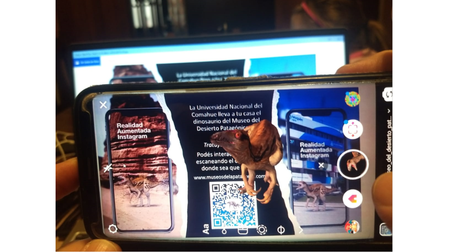 Por este motivo, se ha trabajado en esta nueva propuesta de realidad aumentada donde escaneando el código QR, podés colocar el dinosaurio en tu patio, tu mesa o en cualquier plaza de la ciudad. Es necesario tener un dispositivo con lector QR y una cuenta de Instagram.
