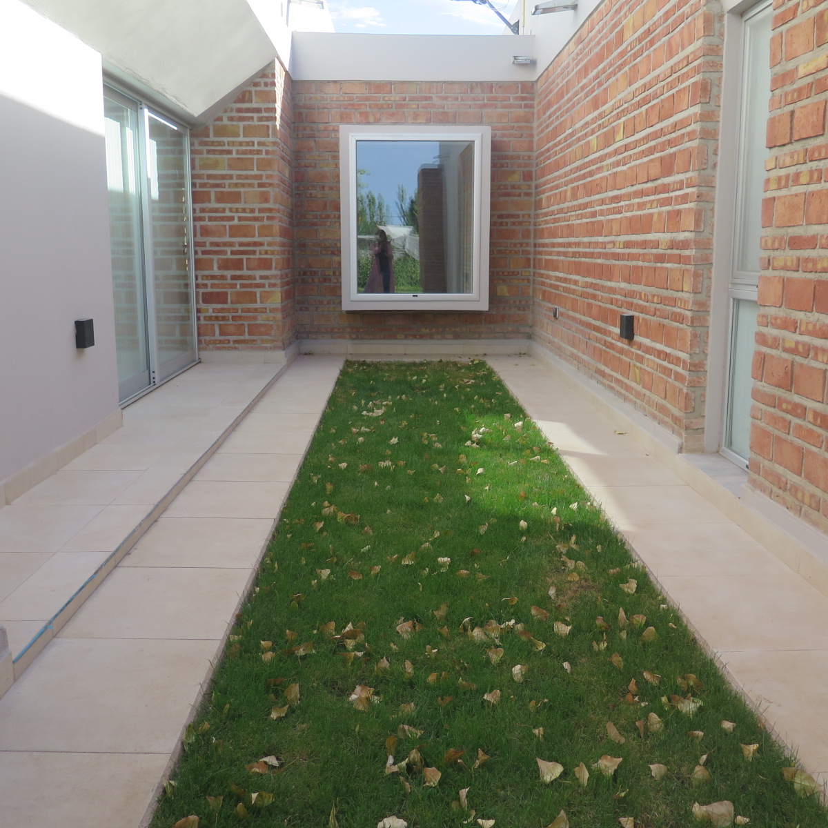 Esta separación se pone en evidencia al atravesar la puerta principal, desde donde se puede tener una visión holística de la vivienda y se revela (mediante un vano intencionalmente direccionado) el vacío generado entre medio de ambos volúmenes devenido en un patio lineal interno que cualifica todos los espacios circundantes.