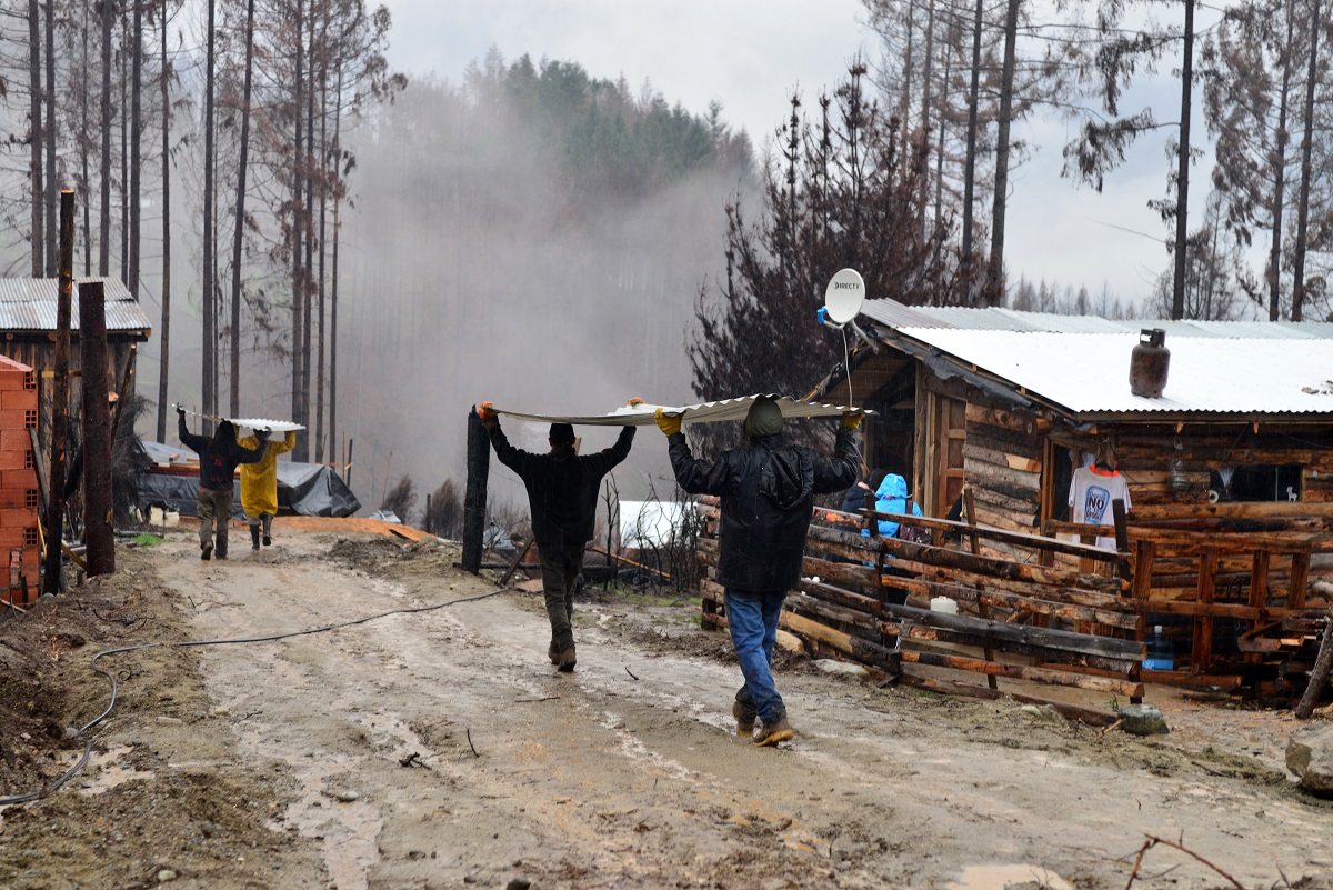 RÍO NEGRO estuvo en la zona afectada por el fuego y solo se ve un puñado de viviendas transitorias levantadas. La mayoría de los damnificados deberán afrontar el invierno en precarias casillas que edificaron como pudieron y con la ayuda de fundaciones sin fines de lucro y manos solidarias.