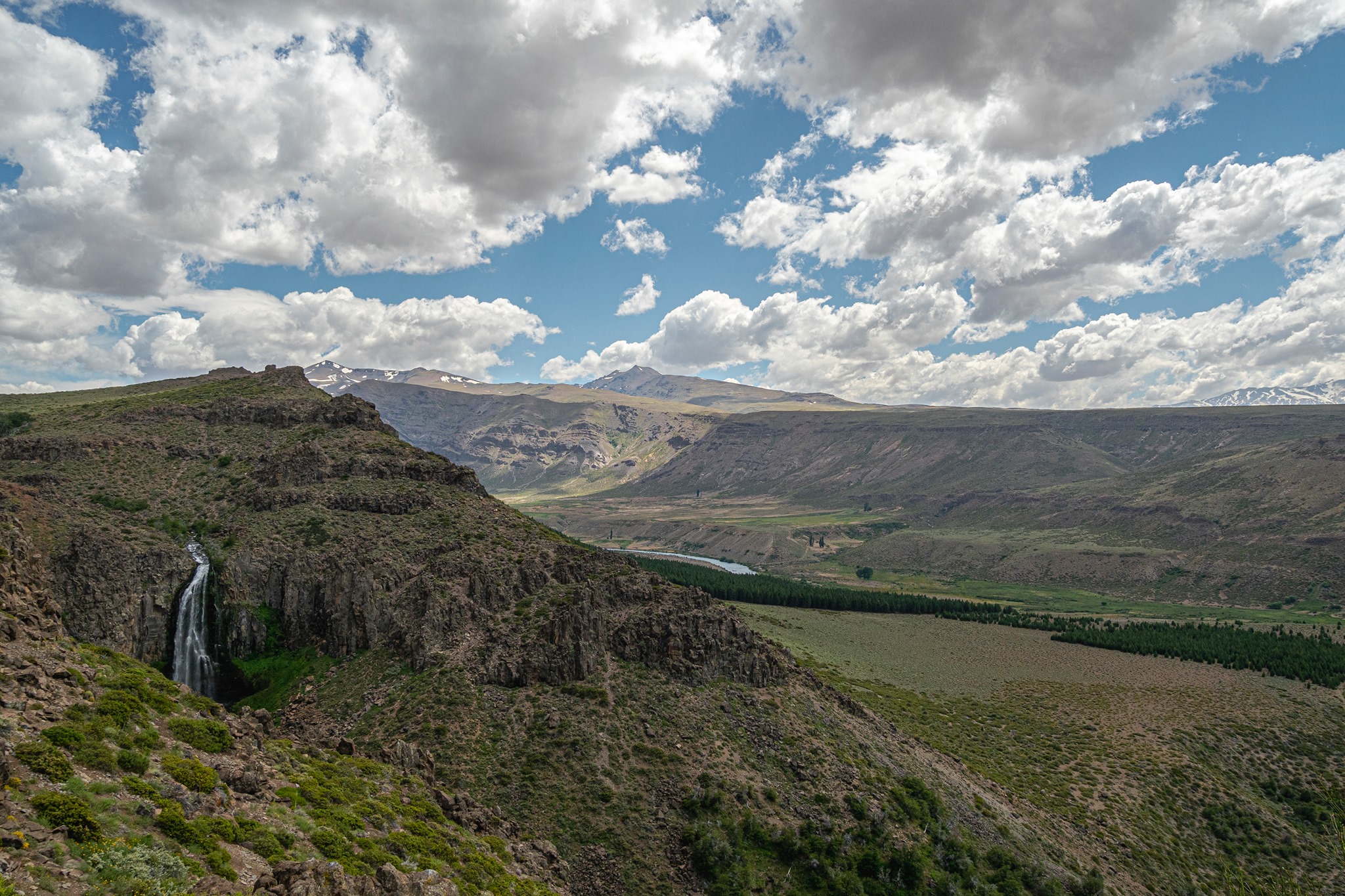 Hay que atravesar un gran bosque de pinos, después del cual la ruta se pierde en la estepa hasta comenzar a descender por una huella difícil y muy, muy empinada y en zigzag que es imposible bajar y subir sino es con un vehículo de doble tracción, mucha pericia, prudencia y paciencia.
