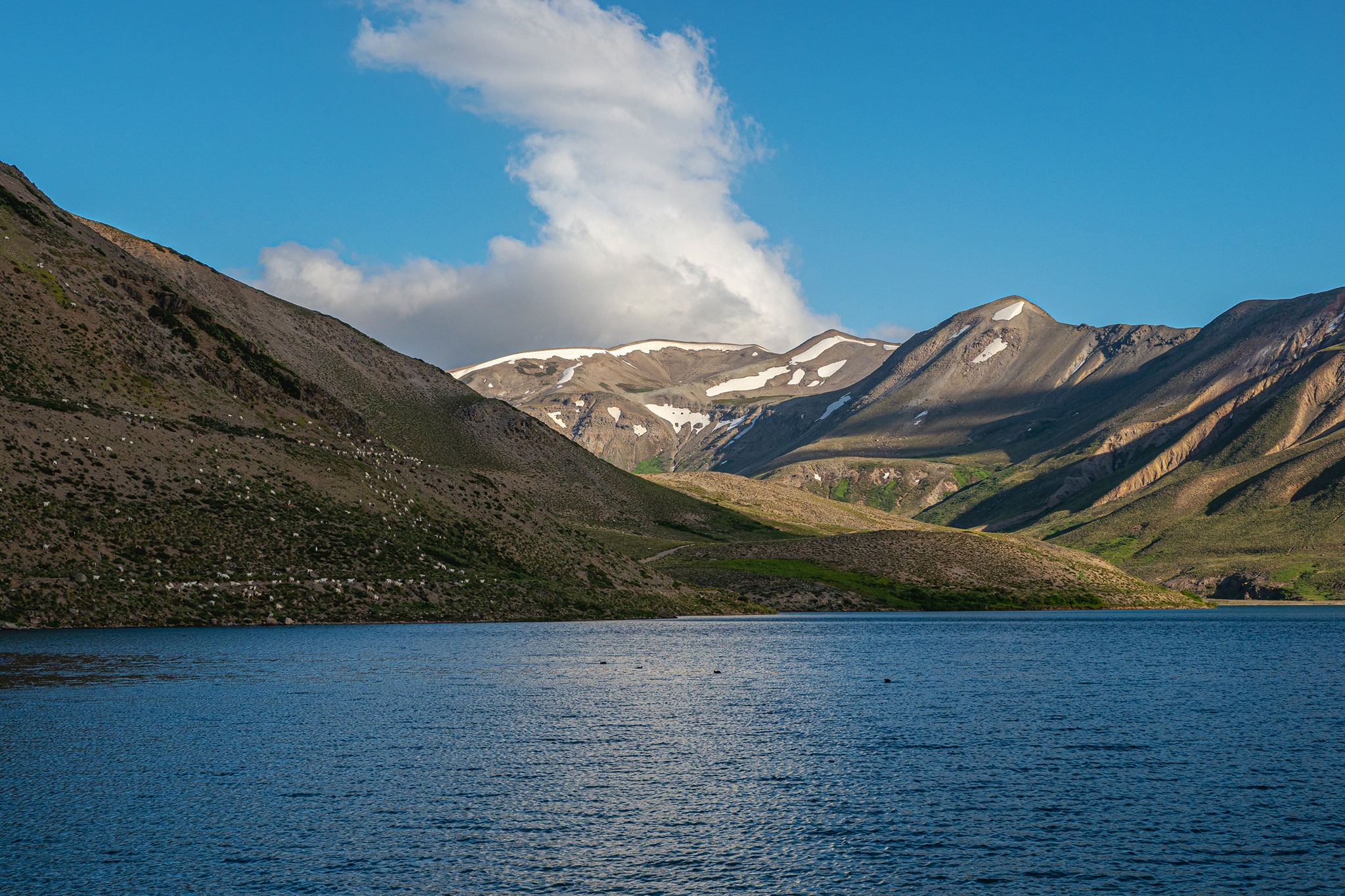 Se llega al valle que acompaña al río que hay que vadear una 5 veces sin mayores inconvenientes, hasta que, de repente, aparece una de las lagunas más hermosas y generosas que alguien pueda imaginar…