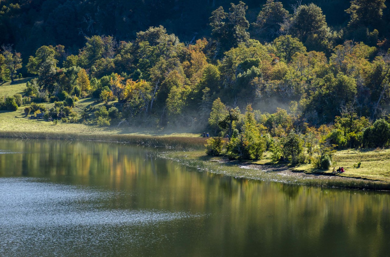 Avistaje de aves entre paisajes de cordillera, trekking por los senderos de Huella Andina, respirar aire puro entre los ñires, los coihues, los maitenes y los radales, caminar entre suaves desniveles, dejar que la mirada vaya del agua a la cordillera y vuelva.