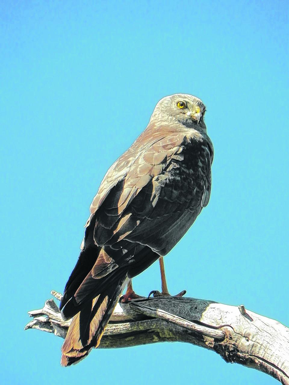 Gavilán Ceniciento (hembra). La cabeza es parda oscura.