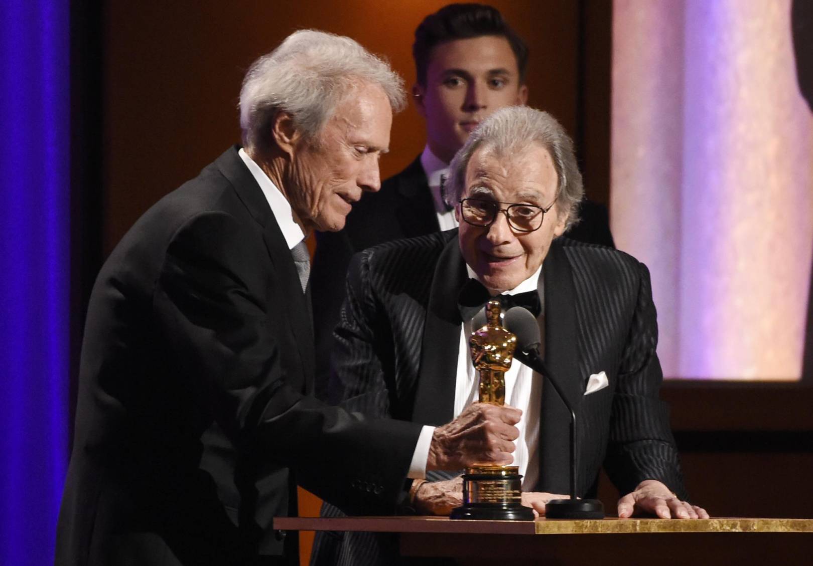 Recibió el Oscar de manos de Clint Eastwood, quien personificó a Harry el sucio, tras un diálogo algo surrealista entre ambos octogenarios.