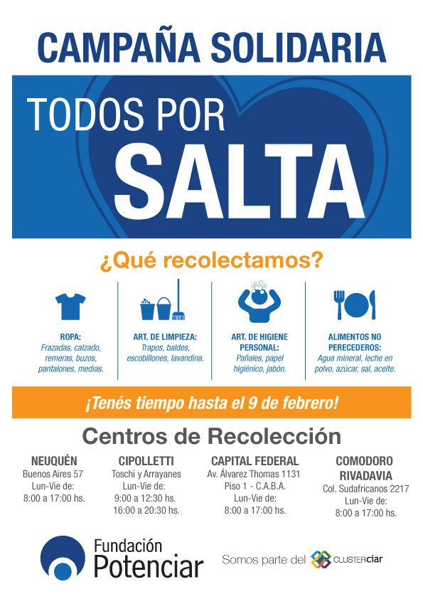 Se reciben donaciones en Neuquén y en Cipolletti. Finaliza este viernes.