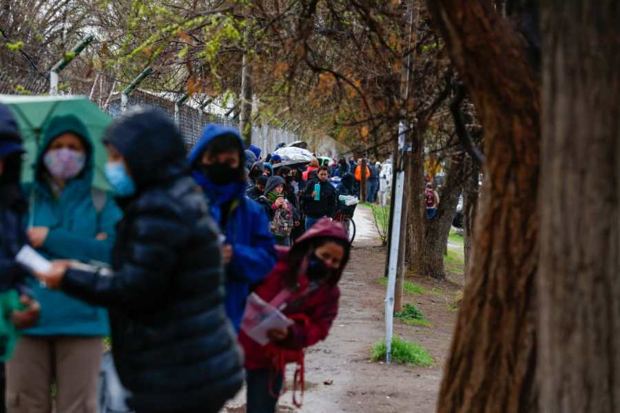 Largas filas bajo la lluvia a la espera de una segunda dosis de Sputnik en Roca