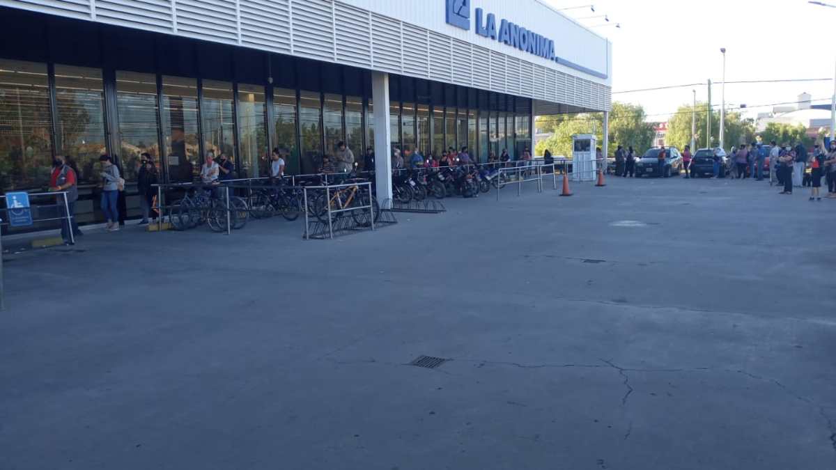 Las personas comenzaron a formar fila desde las 6 de la mañana en la sucursal de La Anónima ubicada en calle San Juan y 9 de Julio.