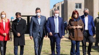 Esta vez, el Presidente compartió el escenario con Kicillof, el ministro Gabriel Katopodis y la titular de AySa, Malena Galmarini, referente del Frente Renovador, pata clave en la coalición oficialista. “Gracias, Alberto por invitarme a formar parte de tu equipo”, le dijo Galmarini, refrendando la unidad sellada en 2019.