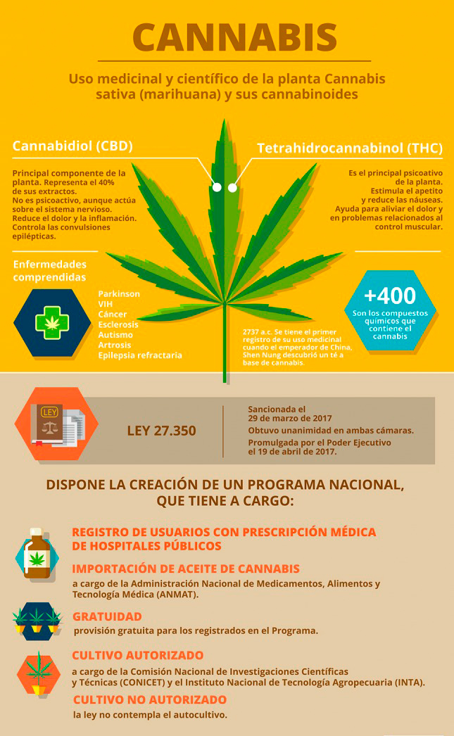 El gobierno nacional promulgó la ley 27.350 que promueve la investigación médica y científica del uso medicinal de la planta de cannabis y sus derivados, sancionada por unanimidad por el Congreso el 29 de marzo.