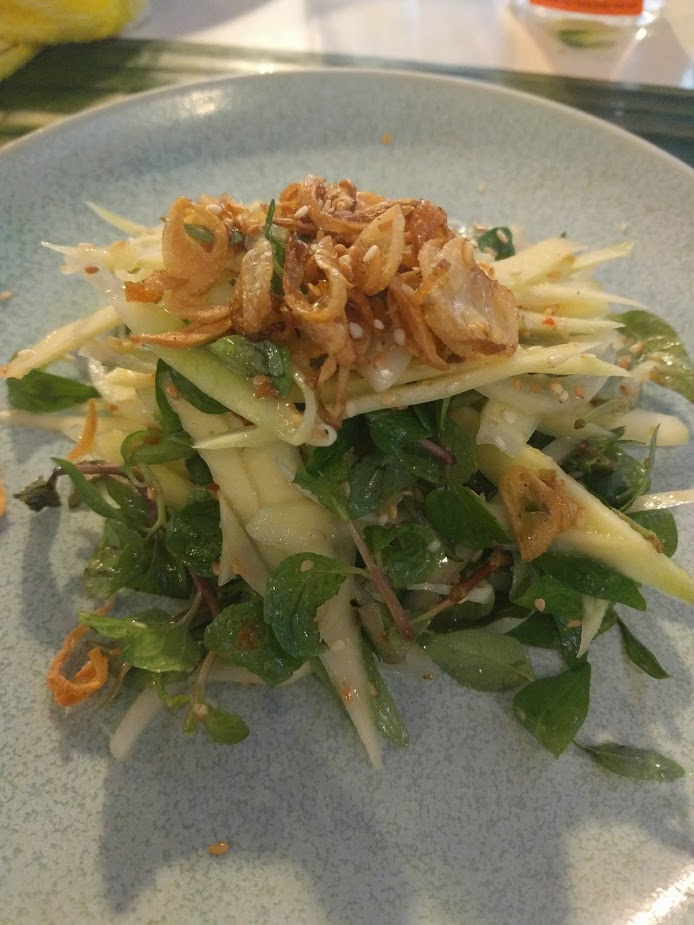 De este país lo más único que probé fue la ensalada de Papaya. En la calle y en los restaurantes más lujosos esta opción esta siempre. En Vietnam, lo más característicos de los platos es que todos llevan hierbas frescas, crudas y puestas al final. Las más reconocibles eran el Cilantro, la Menta y el Perejil. Por lo tanto, esta ensalada era la fruta cortada en tiritas, langostinos, frutas secas y hierbas. Uno se imaginó aceto, oliva y sal para una ensalada. Pero en este caso es un condimento casero de aceite de pescado, ají picante, ajo y lima. Cuesta imaginarse qué sabor resulta de mezclar estos ingredientes, lo que nunca pensas es que va a ser algo tan fresco y delicioso que te lo vas pedir cada vez que puedas.