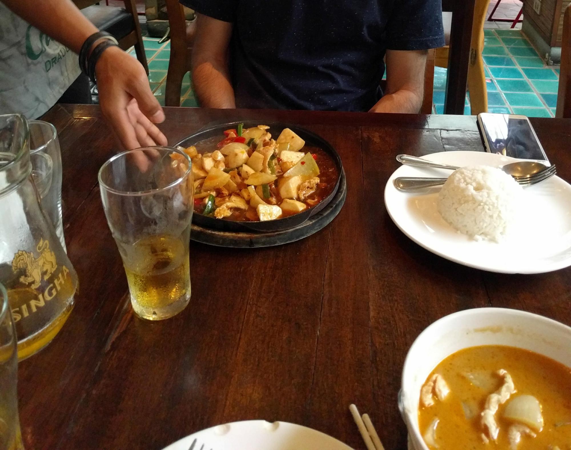 A Bangkok fui de vacaciones y estaba expectante de probar el clásico curry. De hecho fue ese el primer plato que pedí al pisar Tailandia. Cuando viajás perdés un poco la noción del tiempo, los horarios y las rutinas… Por lo tanto creo que eran las 4 de la tarde cuando lo probé. Uno suele probar estos platos en otras partes del mundo donde hacen adaptaciones al gusto de cada lugar. En este caso estaba probando el auténtico curry thai. Pollo, leche de coco y mucho picante todo junto en un bowl y en un plato aparte arroz blanco aromático para compensar. Este se transformó en uno de mis platos preferís del viaje. Por supuesto, que este plato también fue en la calle. Ya venía de un año y medio viviendo y comiendo en Asia antes de llegar a Bangkok por lo tanto ya tenía precaución y ojo para qué puesto elegir.