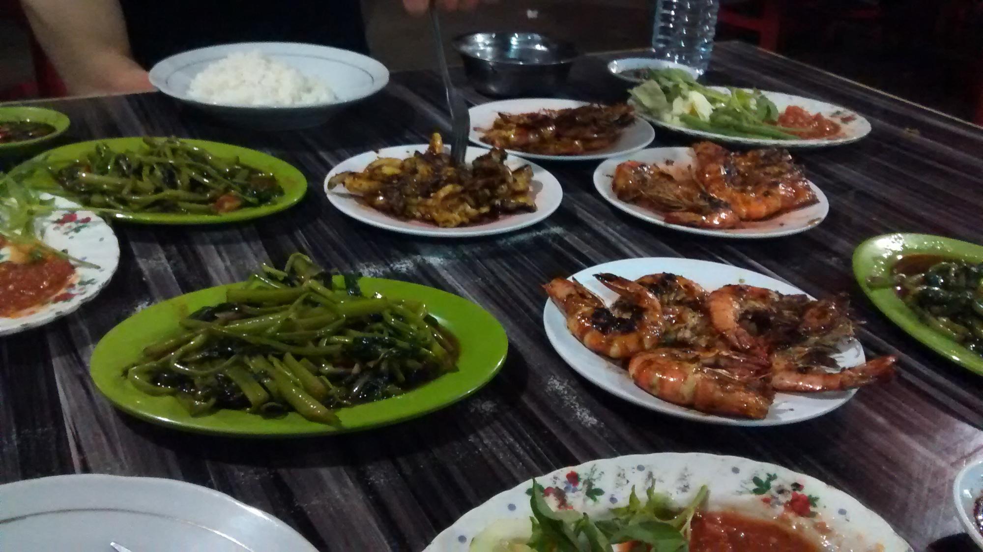 Acá no hay un local de comidas rápidas salvador o alguien que hable inglés. Y así fue como terminamos comiendo los tres, mi jefe, otro colega y yo, en un puesto de la calle más popular. Eran pescados, mariscos y variedad de verduras raras y muy condimentadas… no sabría describir la forma de cocción. La elección de los platos era señalando aquello que en la mesa del vecino se veía tentador. Todo era muy rico y muy picante, pero siempre con un bowl de arroz para compensar y contrarrestar,