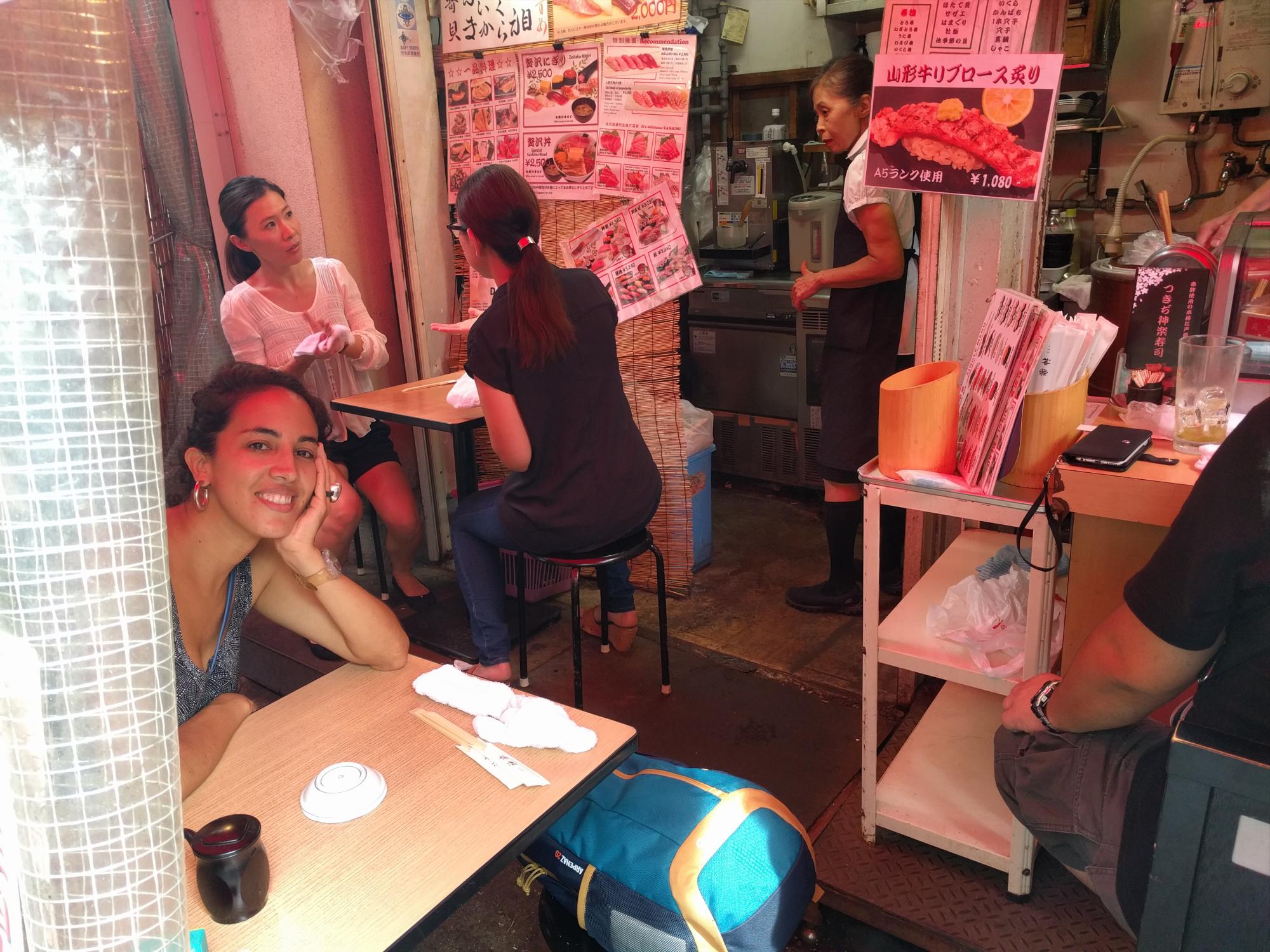 Llegás de madrugada a ver como reciben el pescado fresco y como lo preparan para la venta y consumo. Recorrés los puestos de alrededor donde podés comprar todos los productos de mar listos para comer, algunos envasados y otros cocinados en el momento. Lo especial del lugar (aunque sea para los turistas) es comer ostras frescas recién sacadas con limón y tabasco. Un rato después poder ir por algo más elaborado, unas piezas de sushi perfectas recién armadas, en especial de atún rojo, con wasabi del verdadero y láminas de jengibre fresco para refrescar la boca entre pieza y pieza. De mis 4 días de vacaciones en Tokio, fue la forma más perfecta y sensorial de sentirme en Japón.