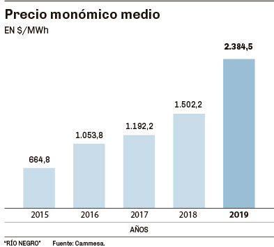 El costo mayorista del megavatio hora (MWh) fue en enero de 2.286 pesos, pero se trasladaron a los usuarios 1.486 (la diferencia son subsidios). Hace dos años esos valores eran de 1.023 (123% más) y 333 pesos (346% más) por MWh, respectivamente.