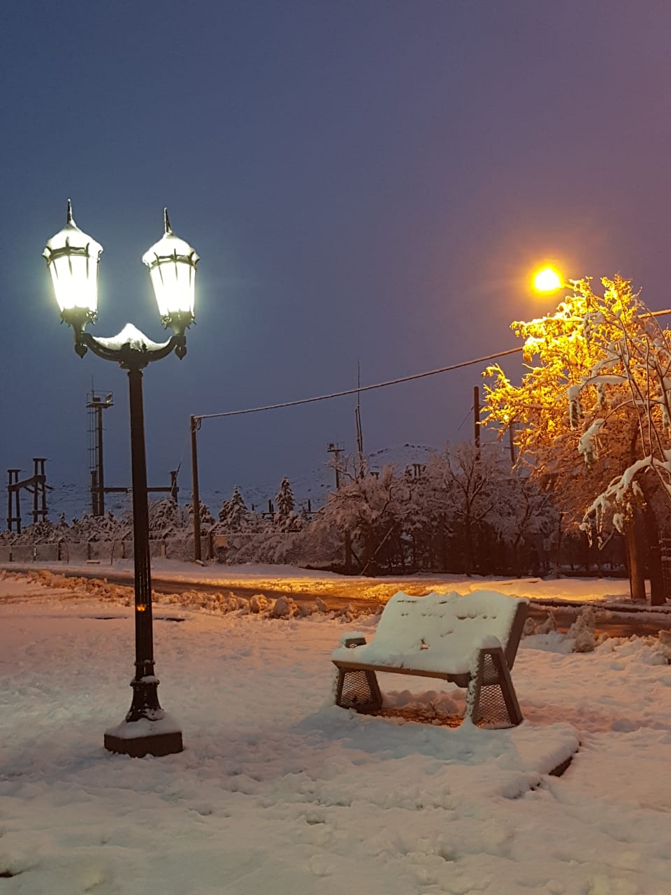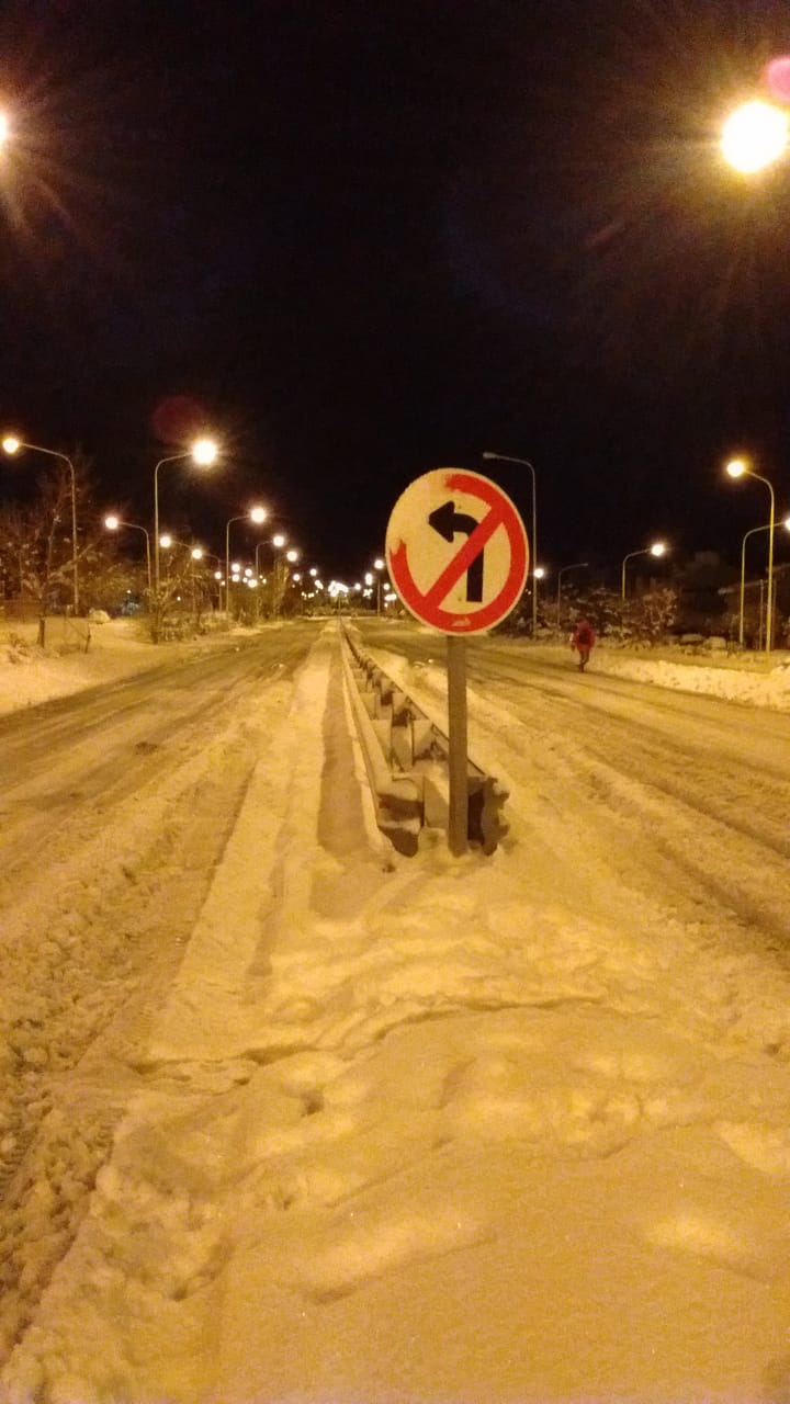 Zapala en la noche del domingo. Sigue Nevando. Fotos de Nico Rodríguez.