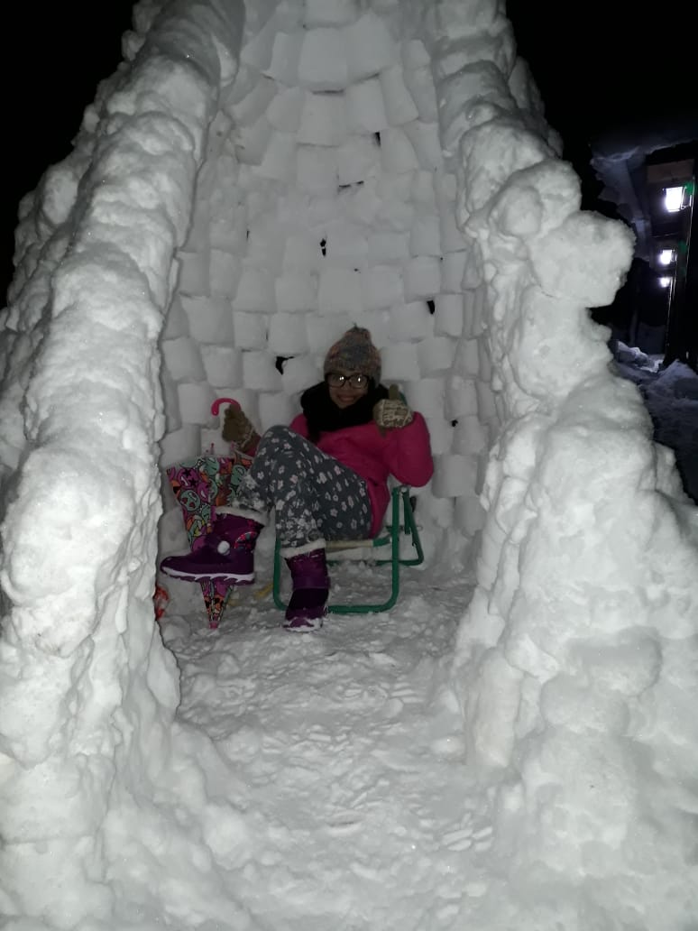 Micaela descansa en su iglú. Desde Zapala