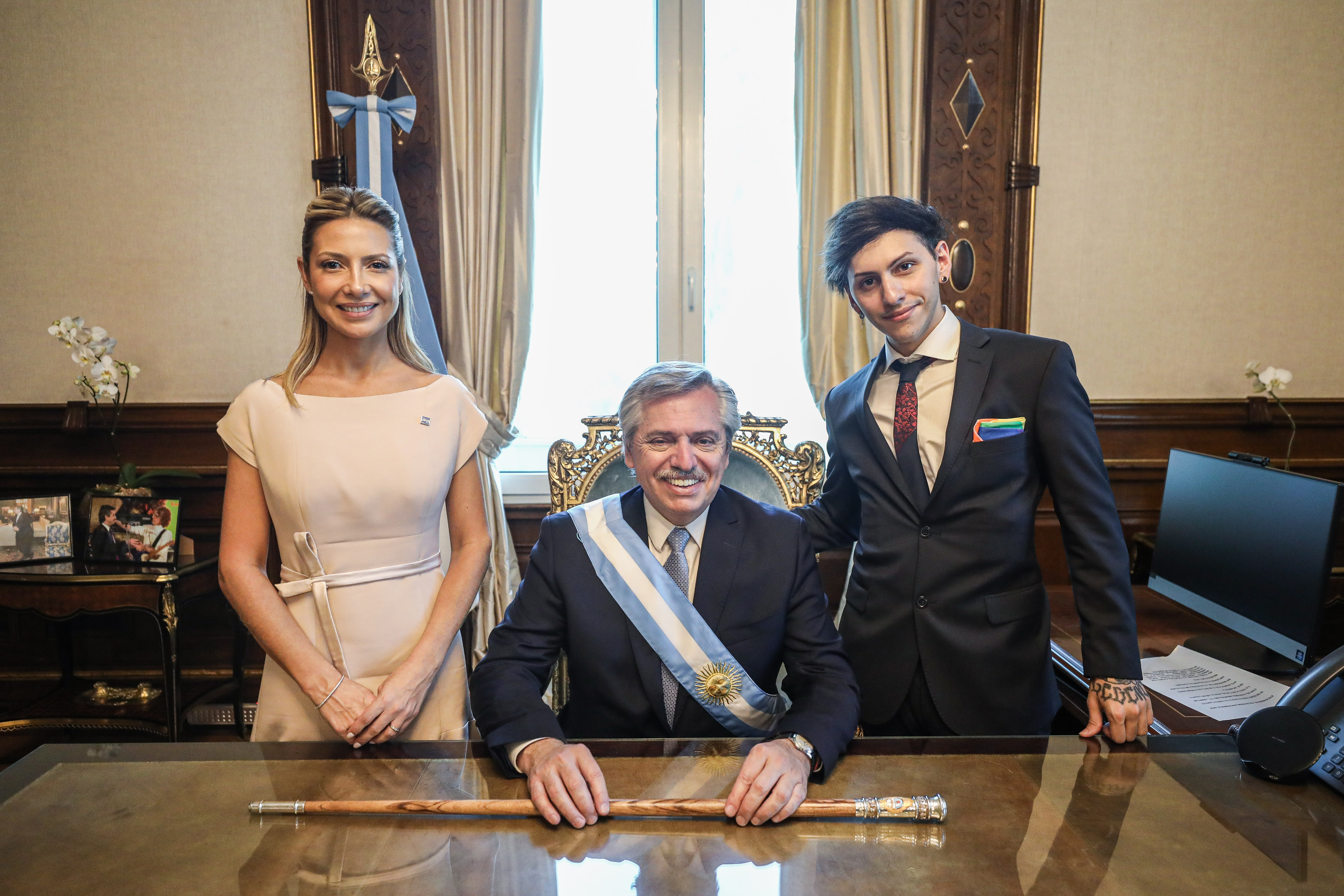 El presidente Alberto Fernández eligió para tener sobre su escritorio de trabajo en su despacho de la Casa Rosada dos fotografías que le recuerdan momentos de su gestión como Jefe de Gabinete del kirchnerismo: una conversando distendidamente con Néstor Kirchner en ese mismo recinto y otra que refleja una visita que hizo a la sede gubernamental el célebre músico Luis Alberto «El Flaco» Spinetta.