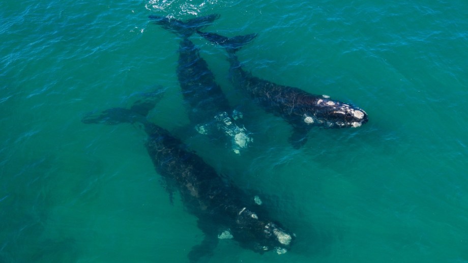 Son de la especie franca austral. Las filmó ayer con su drone Seba Leal en el marco del proyecto de fotoidentificación de los cetáceos que en esta época llegan al golfo San Matías.