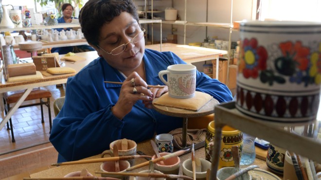 En 1948 comenzaron a modelar vajilla y adornos de cerámica. Desde entonces fabrican piezas únicas, decoradas a mano alzada según la inspiración de las artesanas.