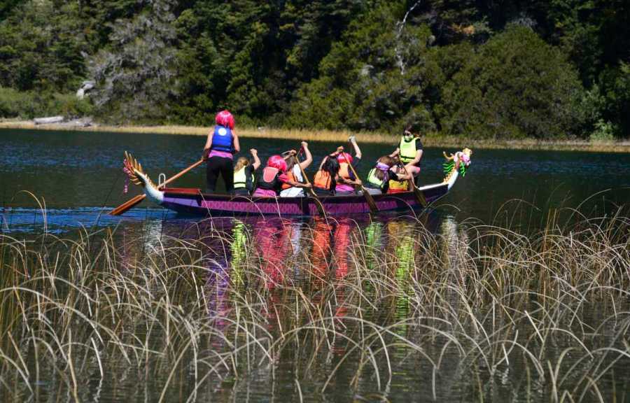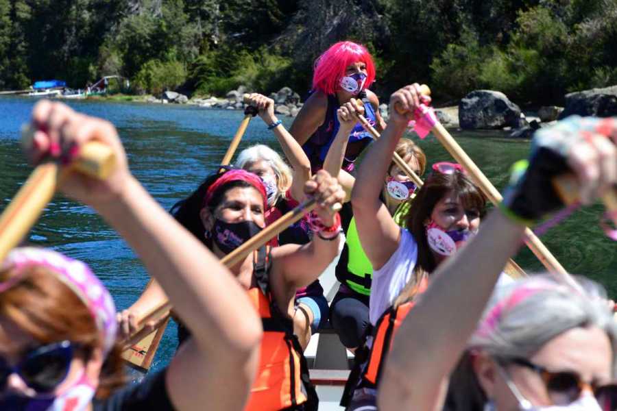 Un grupo de mujeres sobrevivientes del cáncer de mama y voluntarias, entrenan en el lago Moreno con una técnica milenaria china.