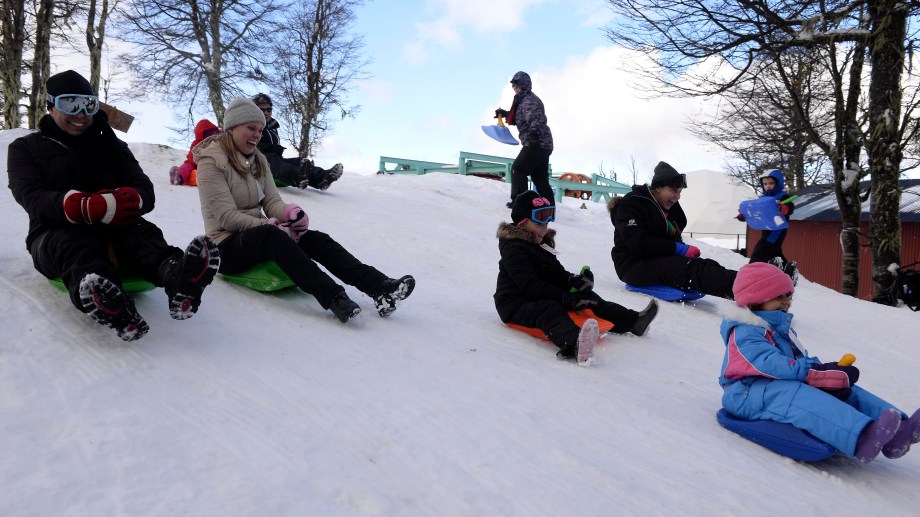 Una especie de paleta plástica con agarre permite deslizarse sentado en la nieve. Es una opción más rudimentaria y que no implica pistas especiales ya que los turistas lo utilizan libremente en las pendientes de nieve.