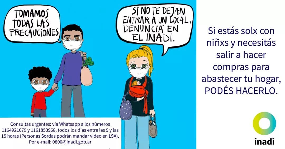Quienes, por razones de fuerza mayor, tengan que salir a hacer compras junto a niños o personas con discapacidad que estén a su cuidado, deberán ser atendidos primeros en los comercios de Neuquén. La medida fue dispuesta por la Dirección de Comercio del Municipio. El Instituto Nacional contra la Discriminación, la Xenofobia y el Racismo (Inadi) ya había observado problemas con estas situaciones, por lo que inició una campaña.