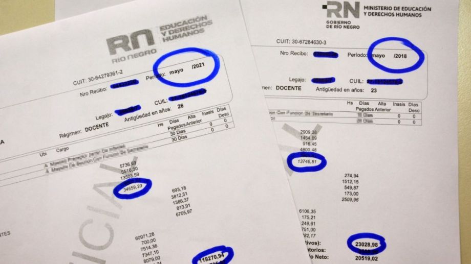 Un análisis de Río Negro, con el recibo de mayo del 2018 de un docente de Nivel Inicial con 23 años en actividad, totalizó -con sus dos cargos- un monto remunerativo de 13.746,81 pesos de un bruto de 23.028,98. La porción liquidada con aportes rondaba el 60%. Ese caso, en mayo pasado, tuvo una liquidación bruta de 119.270 pesos, con una asignación remunerativa de 34.659 pesos. Esta parte sólo llegó al 29%.