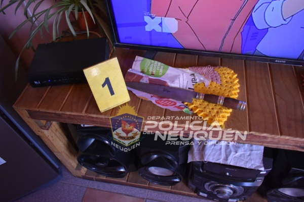 El comisario señaló que por ese hecho ocurrido el sábado, el martes realizaron un allanamiento en la vivienda donde sucedió el altercado. Indicó que allí se encontró «un cuchillo de 35 centímetros de largo», similiar al que describió la víctima.