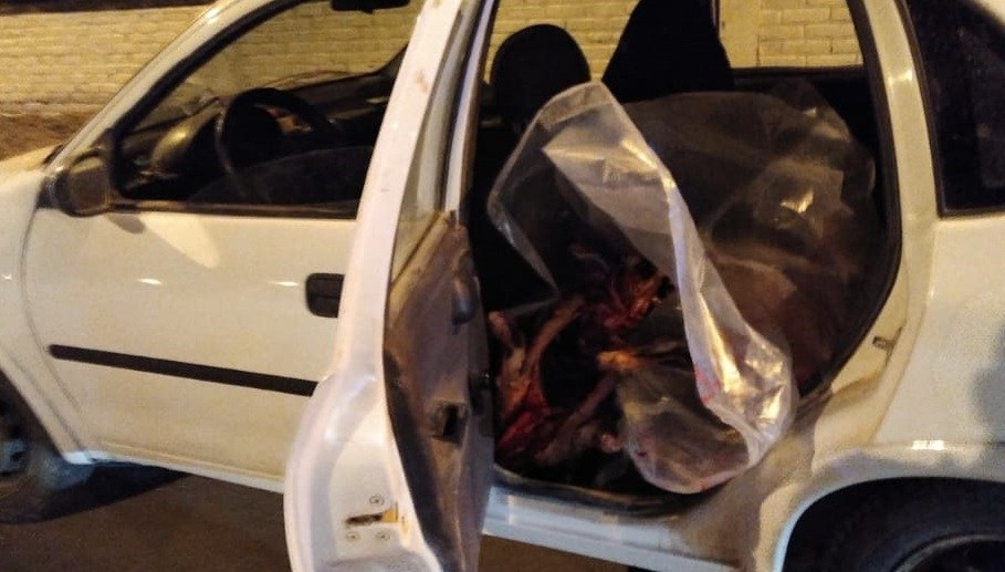El conductor del Chevrolet Corsa no pudo certificar el origen de los animales faenados pero además no contaban con una cadena de frío para mantener el alimento por lo que se procedió al secuestro de los animales.