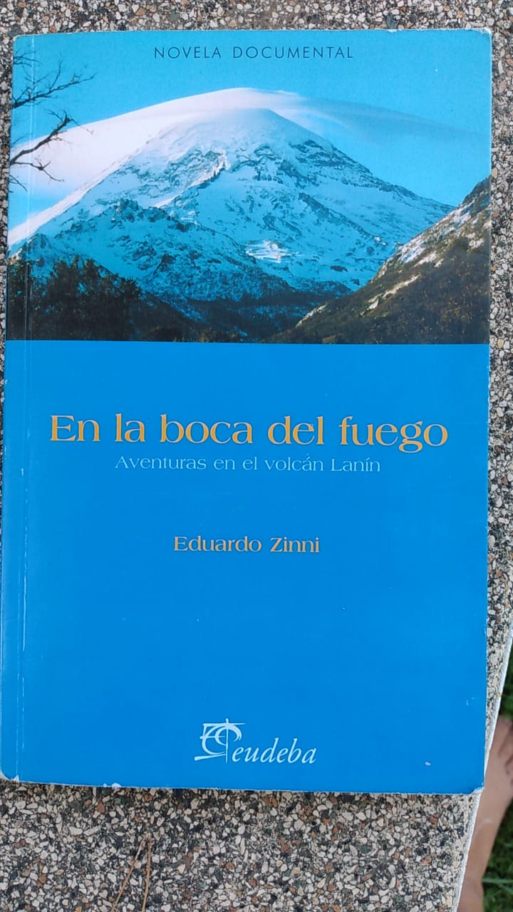 ¿Cuál no sería mi emoción, cuando años más tarde una alumna de la facultad, zapalina de ley, me trajo el libro que hoy les quiero comentar, “En la boca del fuego” (Eudeba 1999), su autor Eduardo Zinni y cuyo subtítulo es Aventuras en el volcán Lanín?.