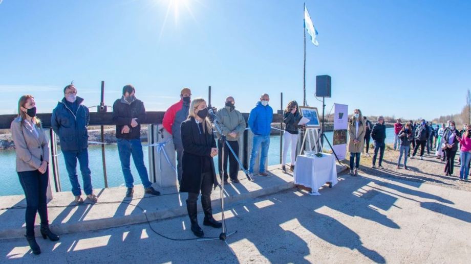 La intendenta María Emilia Soria participó ayer junto al Secretario de Producción y Desarrollo Sustentable, Mario López, del acto de Apertura de Compuertas en el aductor de Guerrico, organizado por el Consorcio de Riego de General Roca.