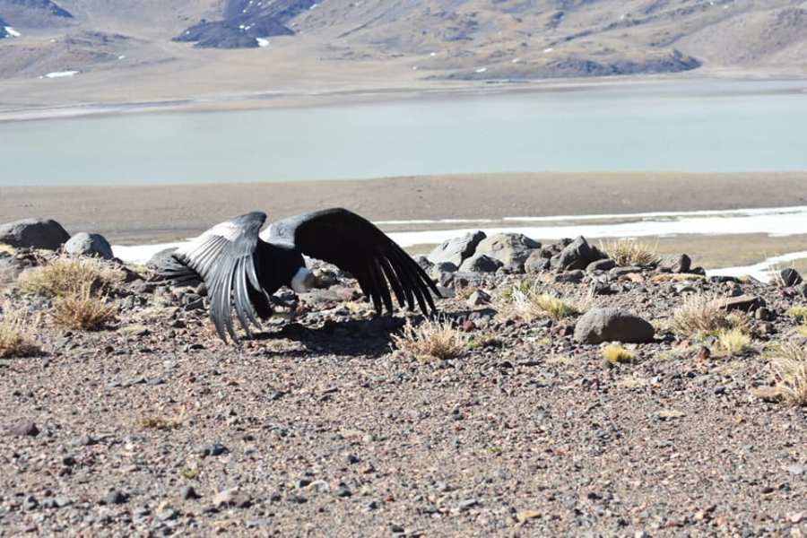 El cóndor que fue encontrado herido en un sector de chacras de Chos Malal y que recibió un tratamiento con medicación específica traída desde Mendoza fue liberado hoy en el Área Natural protegida Trómen.