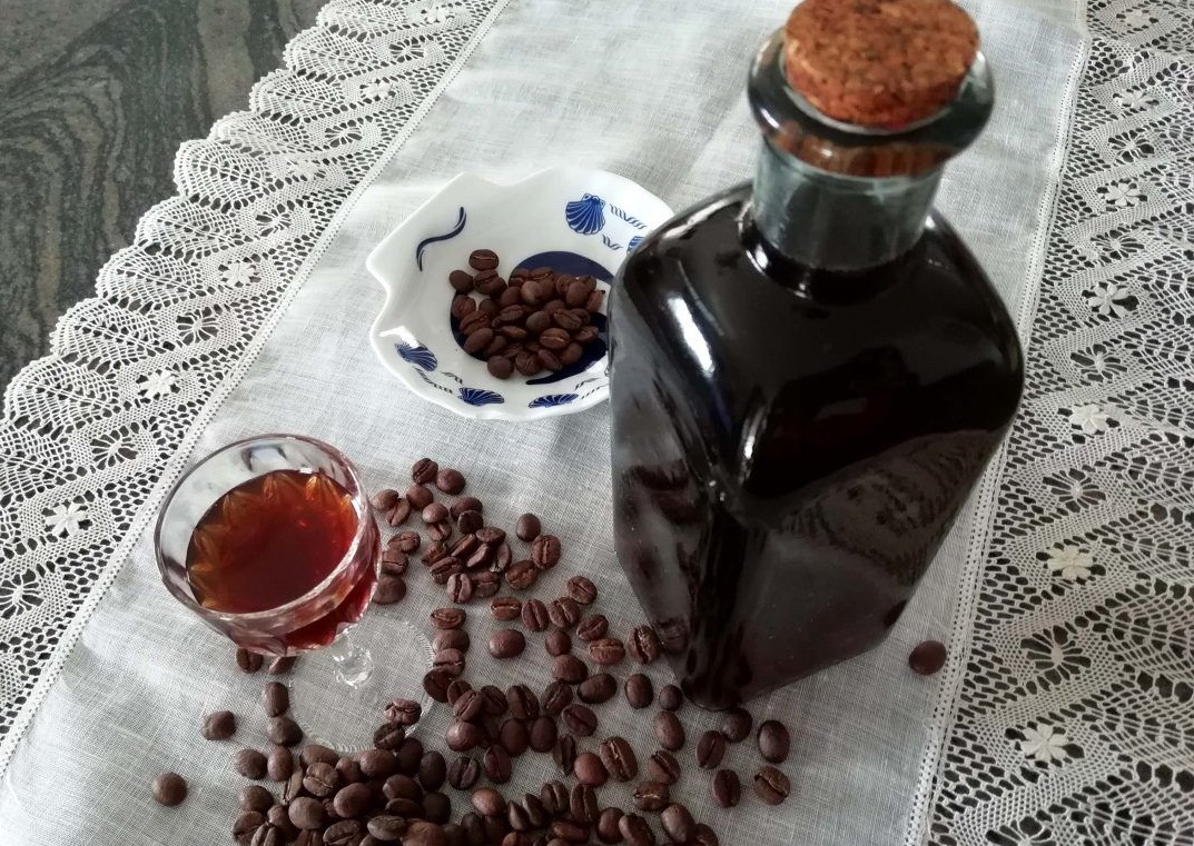Colocar el café en un bol, previamente lavado y rociado con alcohol de uso gastronómico; incorporar la nuez moscada, la canela en rama, el clavo de olor, el jengibre y la pimienta. Añadir el alcohol de uso gastronómico y tapar. Dejar macerar durante 20 días.