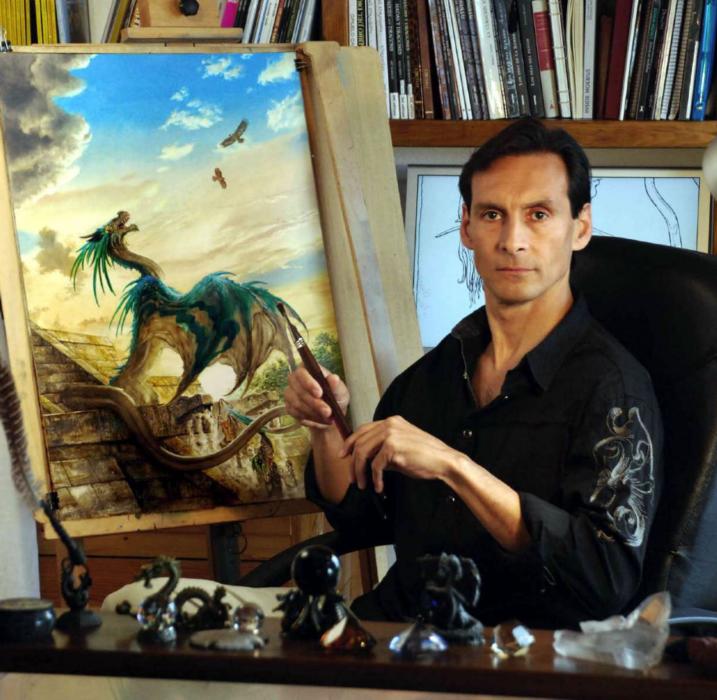 – Fue a partir de las coincidencias y los espacios comunes entre el trabajo y la cosmogonía que Ciruelo instala en sus libros y la mía, en la Saga de los Confines. Mestizar podría ser una palabra posible. Contar cómo los dragones llegaron a este continente, trabajar sobre la idea de una reunión entre dragones, alquimistas y chamanes.