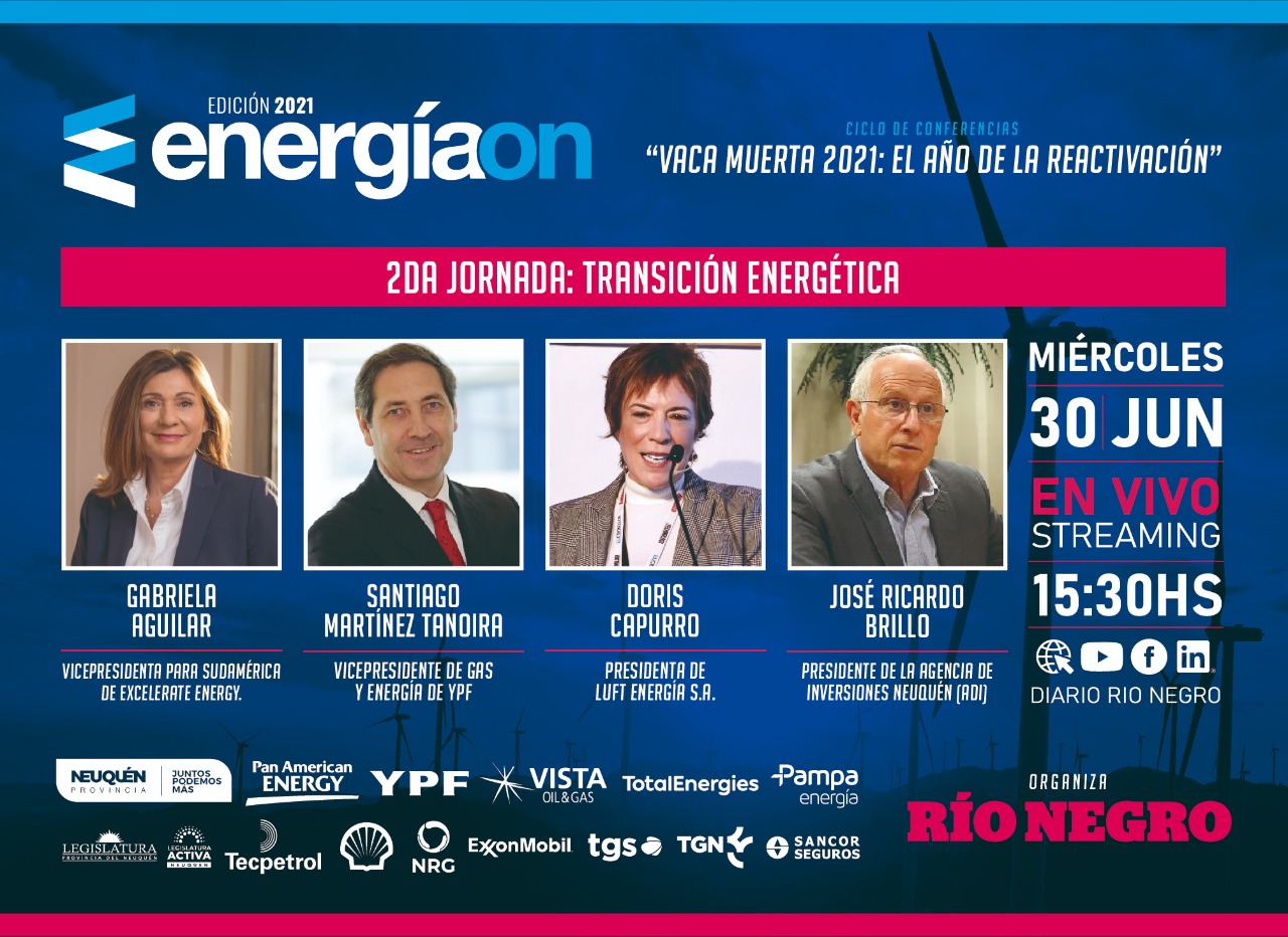Como en todas las citas de estas Octavas Jornadas de Energía 2021 el evento se transmitirá en forma virtual por todas las redes sociales y la página web del diario Río Negro, y no requerirá de inscripción previa o acreditación alguna.