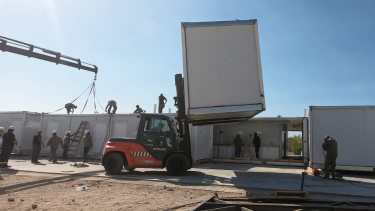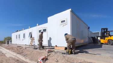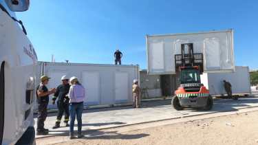 Los módulos llegaron desde Buenos Aires en 28 camiones, y ya están montando la estructura. Prometen que estará lista a fines de la semana que viene