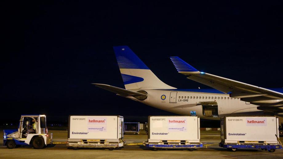 La aeronave Airbus 330-200, matrícula LV-GHQ aterrizó a las 18.02 en el aeropuerto internacional de Ezeiza, transportando 768.000 dosis de la vacuna fabricada en China, tras haber despegado desde Beijing el lunes a la tarde y hacer una escala técnica en Madrid para reabastecimiento de combustible.