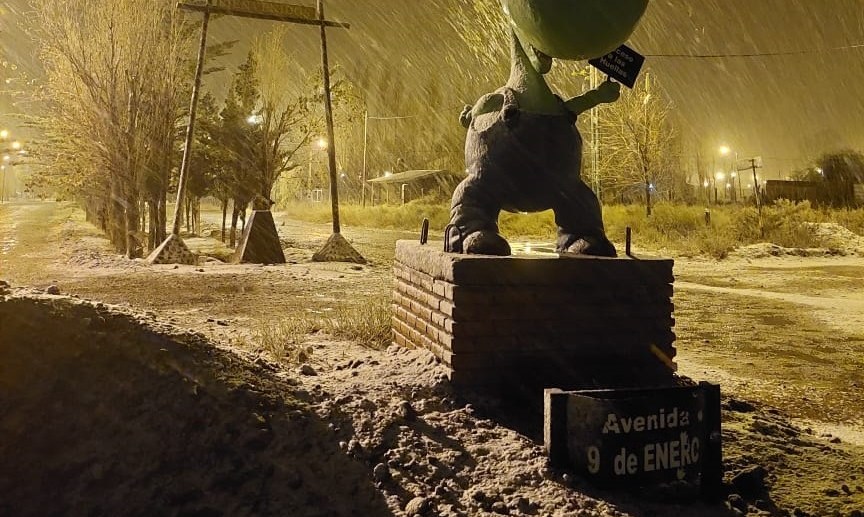 El propio intendente de la localidad se encargó de difundirlo, orgulloso de los hermosos paisajes de la localidad que no sólo tiene lago, playas y actividades paleontológicas, sino ahora también algo de nieve.