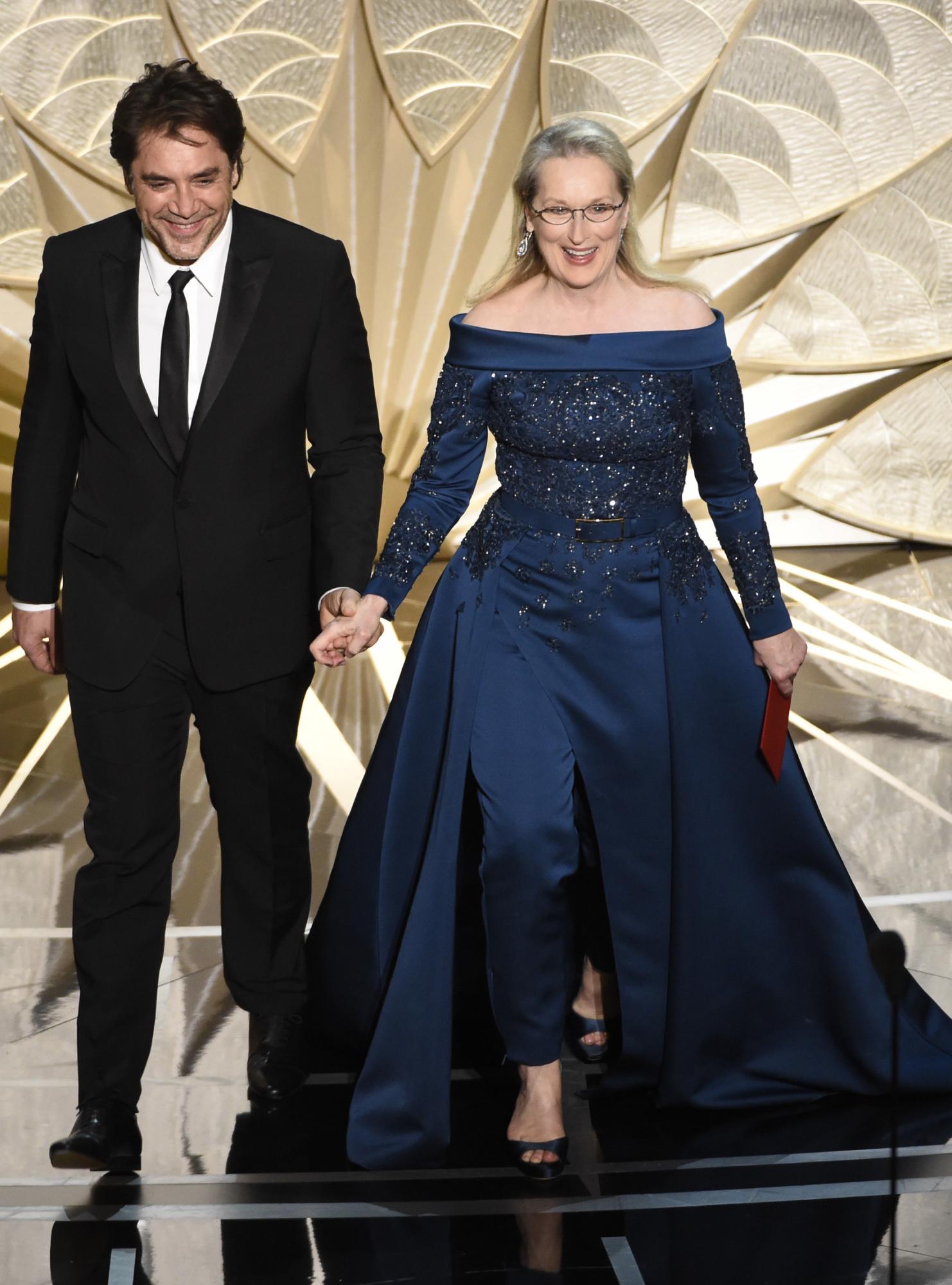 MERYL STREEP: La veterana actriz, nominada por vigésima vez, había saltado a los titulares por la polémica con Chanel Alta Costura. Al parecer, el equipo de la actriz había exigido que además de cederle el vestido, le pagaran una cierta cantidad por lucirlo en tan señalada ocasión, a lo que la firma se negó. Finalmente, Streep optó por un vestido pantalón en azul marino y con pedrería de Elie Saab que también cosechó muchos elogios.