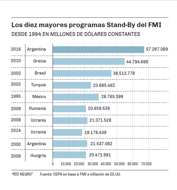 - Los millones que el Fondo aprobó para Argentina en 2018, de los cuales se desembolsaron 44.000.