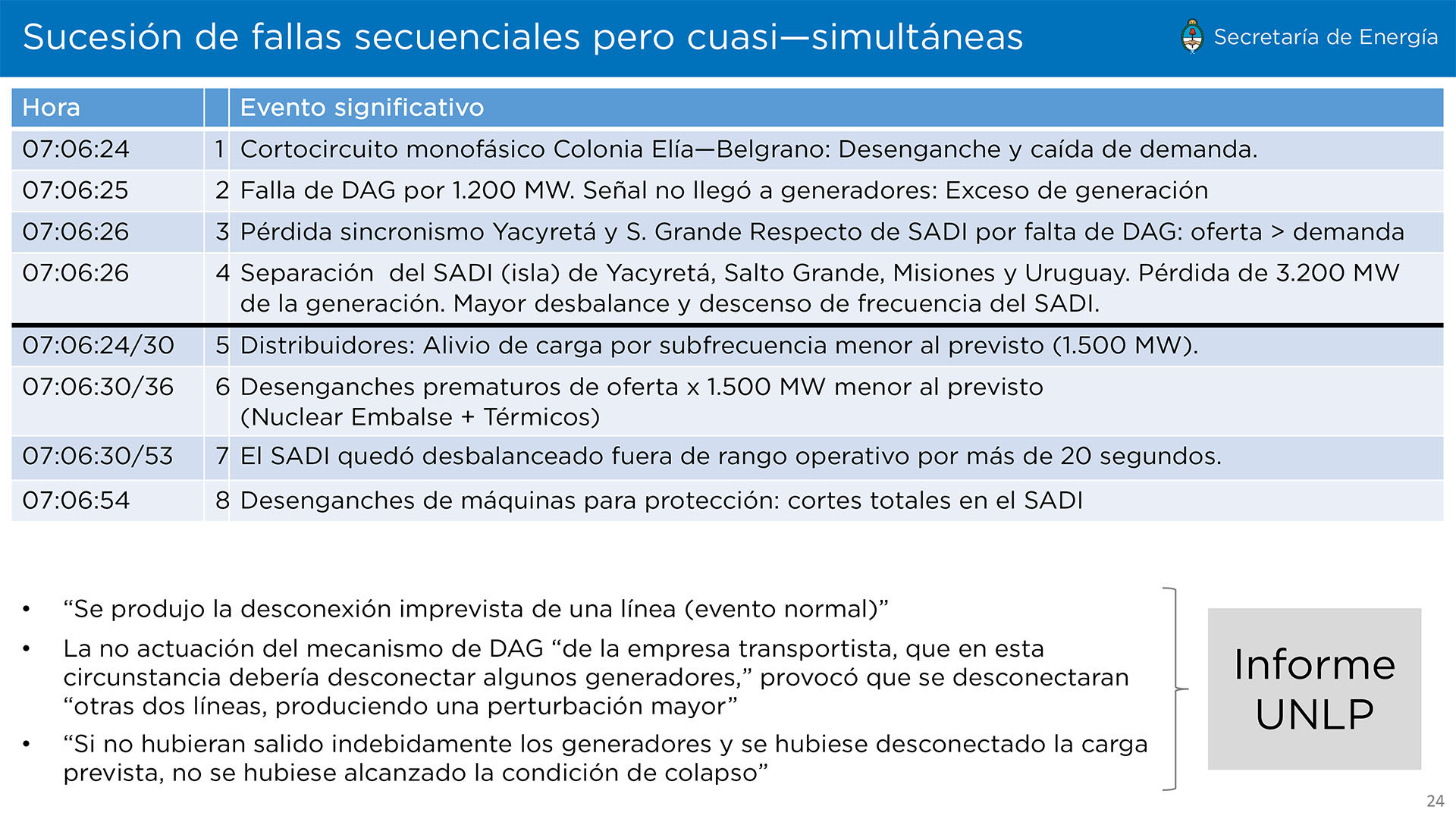 Lopetegui informó que en primera instancia ocurrió «un error operativo» que la misma empresa Transener «reconoció» en el informe que elevó al Gobierno, y que en segundo lugar «no operaron bien los mecanismos de protección» de distribuidores y generadores.