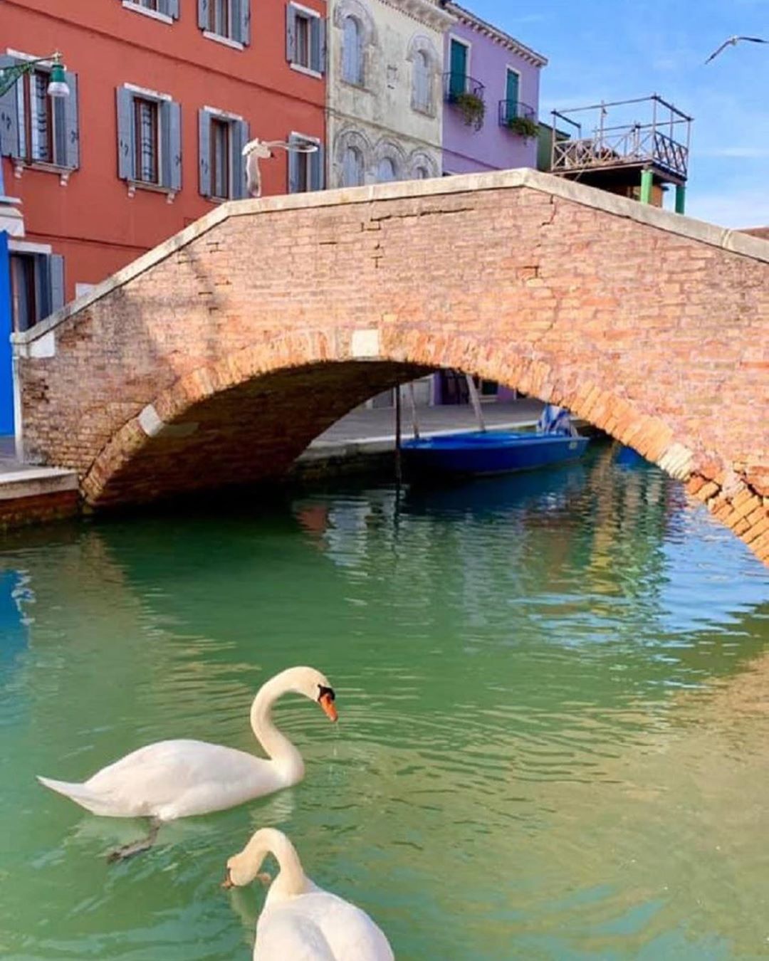 En el caso de Italia, la reducción de transeúntes y turistas aparece a la vista en un insólito cambio en los canales de Venecia. Gracias a las imágenes que han sido difundidas a través de las redes sociales, en los icónicos canales donde los turistas acostumbran a pasear en góndola, el agua de los canales se vuelve cada día más cristalina, dejando ver a los peces nadando y los cisnes y patos se adueñan de las calles de la ciudad flotante.