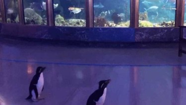 Los curiosos pájaros vagaban por los oscuros pasillos del Shedd Aquarium, mirando las exhibiciones sobre la selva amazónica y los arroyos del sudeste asiático. Pasaron por tanques gigantes que contenían mantarrayas, delfines y pirañas de vientre rojo, girando la cabeza para mirar en todas direcciones.