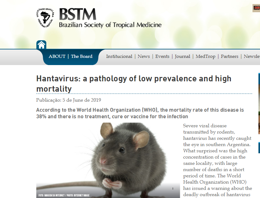 “Hantavirus: una patología de baja prevalencia y alta mortalidad” es el título del artículo publicado por la Brazilian Society Of Tropical Medicine que se puede leer en castellano, portugués e inglés.