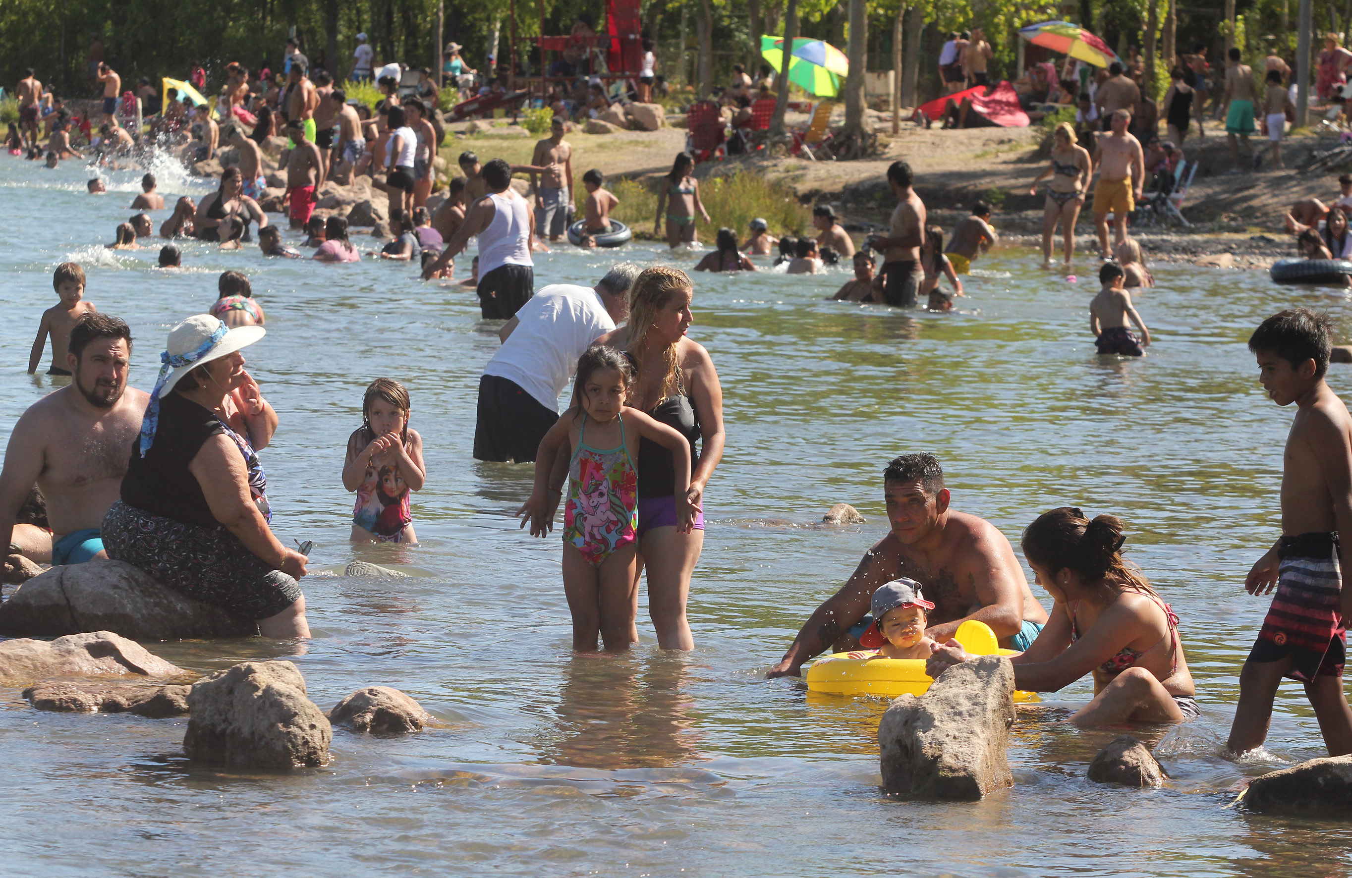Pese a que se observó una multitud en busca de una pausa al calor a las orillas del río, el “factor ocupación” no superó el 50 %, según se informó desde la municipalidad. Sin embargo, fue notoria la poca cantidad de personas que usaban tapabocas a la salida del agua.